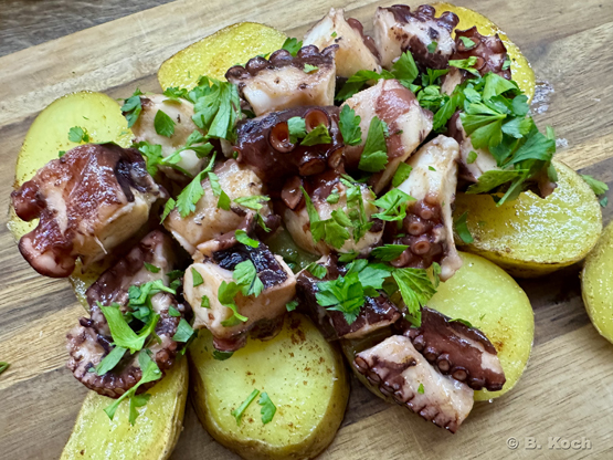 Ein leckere Essen, das Dank der vorgekochten Pulpoarme im Handumdrehen auf dem Tisch stand.