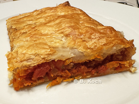 Die kulinarische Weltreise: Byrek me domate dhe qepë – Byrek mit Tomaten und Zwiebeln (Albanien)