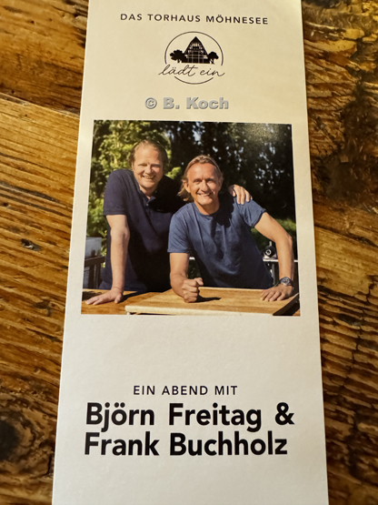 Frank Buchholz (links), geboren im April 1967 in Dortmund und Björn Freitag (rechts), geboren im Juni 1973 in Gelsenkichen sind echte Ruhrpottjungs, was man an dem Abend an ihrer ganze Art merkte. Beide sind aus verschiedenen Fernsehformaten bekannt, gemeinsam reisen sie für die WDR-Sendung Lecker an Bord auf einem Hausboot durch Nordrhein-Westfalen.