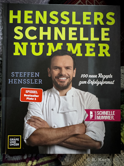Hensslers Schnelle Nummer – Morgens|Mittags|Abends und 100 neue Rezepte zum Erfolgsformat, erschienen im Verlag Gräfe und Unzer fanden über das Einlösen von DB-Bonusmeilenpunkte des GöGas zu uns. Wir sind ja immer auf der Suche nach schnell gemachten Rezepten, die der GöGa auch mal alleine hinbekommt, falls es mir mal wieder nicht so gut geht.
