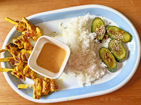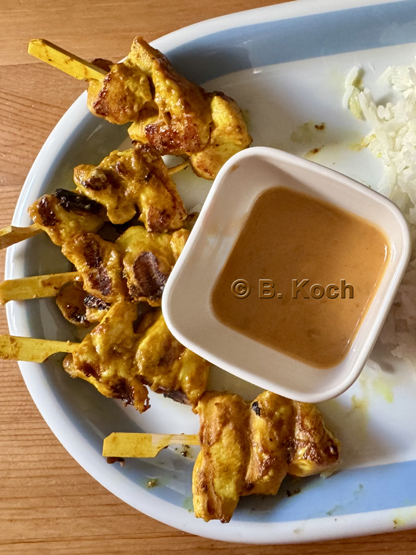 Heute bringe ich ein leckeres Gericht aus Thailand mit, das dort als Streetfood beliebt ist: Saté oder Satay gai, Hähnchenspieße in einer schmackhaften Marinade, die warm und kalt wunderbar schmecken. Man kann sie mit einem kalten Erdnussdip genießen.