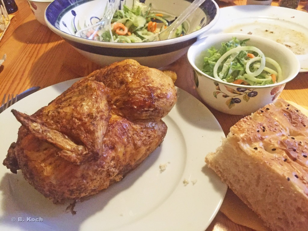 Ich konnte 2 Brötchen à 170 g formen, habe sie mit Sesam bestreut und 30 Minuten bei 220 °C Ober-/Unterhitze gebacken.